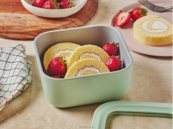 Kis élelmiszertároló edényünk ideális nagy falatok vagy kisebb ételek tárolására, és levegőkibocsátó technológiával készült, hogy az étel frissen (és a szagoktól távol maradjon). A nem mérgező, tapadásmentes, kerámia bevonatú üvegnek köszönhetően ez a tartós tartály minden eddiginél egyszerűbbé teszi az előkészítést, tárolást és tálalást. egy ingyenes tartószíj a csomagban az útközbeni ételek extra szoros tárolására.