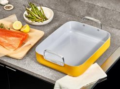 A tiszta főzést felülmúlja a sütőedény, amely mindenhez ideális, a fő rendezvények receptjétől a vasárnapi vacsora sültekig. A jellegzetes tapadásmentes bevonattal ellátott serpenyő minden eddiginél egyszerűbbé teszi a főzést és a tisztítást. rozsdamentes acél rács tartozik hozzá.